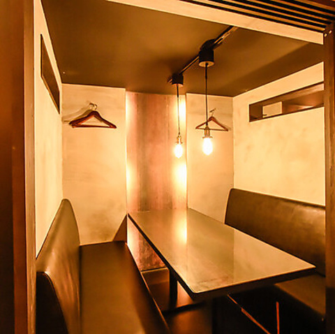 3~4名様の個室は、プライベートな空間で心ゆくまでリラックスできる環境です。大人のための洗練された空間で、特別な人との大切なひとときをお過ごしください。落ち着いた雰囲気の中で、美味しい料理や飲み物を楽しみながら、心温まる会話を交わすのに最適な場所です。1、2Fの指定はできませんので、ご了承ください。