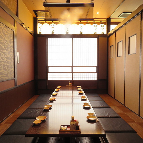 【落ち着いた和の雰囲気】少人数~大人数まで、人数に合わせて掘りごたつ個室のご利用が可能です。ゆったりとしたひとときを過ごせる特別な空間です。周囲を気にせず、プライベートな空間で会話を楽しむことができるリラックスした時間を提供いたします。