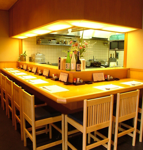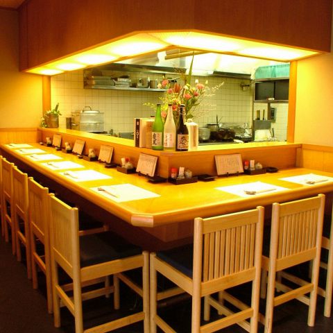 お料理の姿を眺めながらゆったりと食事やお酒を愉しめるカウンター席1~2名様のご利用に最適です。