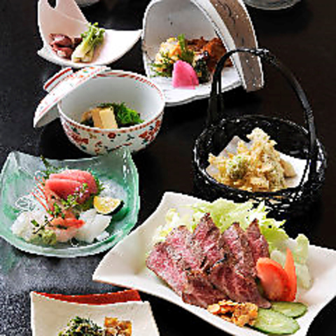 草庵は四季折々の食材を使ってお造りしております。それぞれの季節を感じられるお料理をご堪能ください。