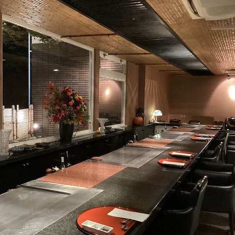 各テーブルわずか2~3席に、大きな鉄板という贅沢。鉄板で調理される旬の食材たちを目の前に、いつもとは違うお洒落な非日常空間で大切な時間を過ごせます。全席鉄板を目の前にしたカウンター席、贅沢なひと時をお過ごし下さい。