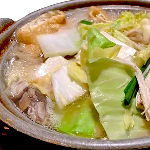 イワシのつみれと鶏のつみれ入り!醤油味をベースとした、優しい味わいが自慢。野菜と鶏肉のちゃんこです!