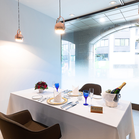 記念日は個室のお席でフルコースをお楽しみください。デザートにはメッセージもお付けできます。