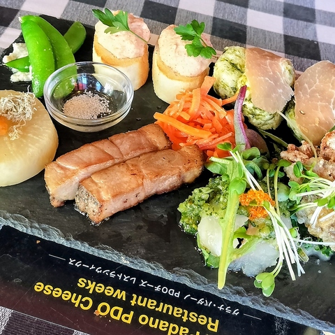 【サムシングの気まぐれサラダ+お好きなドリンク一杯(コーヒー/エスプレッソ/紅茶/ウーロン茶/コーラ/ジンジャーエール/グレープフルーツジュース/オレンジジュース/コラーゲン入り白ブドウソーダ/カルピス)+選べるメイン】+200円でカプチーノ/カフェラテ、+300円でイタリアンビールのモレッティに変更可★(ドリンクテイクアウトOK)