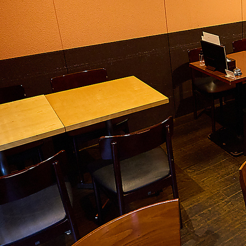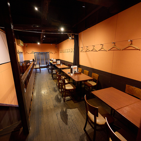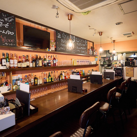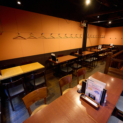 店内に入るとまず目につくのがオレンジ色の可愛い壁紙に囲まれた空間♪ゆったりテーブル席やカップルやお一人様におすすめのカウンター席♪女子会や宴会などにも◎