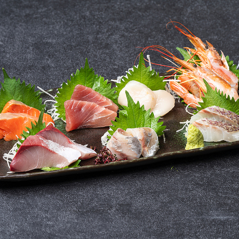 新鮮魚介をお手頃な値段で味わえる、赤身と脂身のバランスが良いお刺身など、3種、5種、7種と贅沢に盛り込んだ一皿。ぜひ頼んでいただきたい逸品です!人数に応じて枚数の調整も承っております!※内容はお任せです。