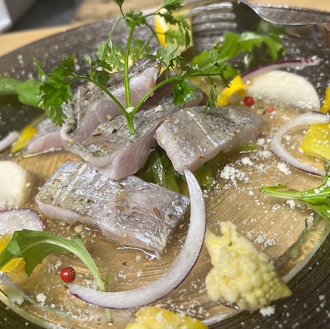 市場直送の鮮魚!買い付けた旬の魚介類をカルパッチョやムニエル、パスタでお楽しみください。