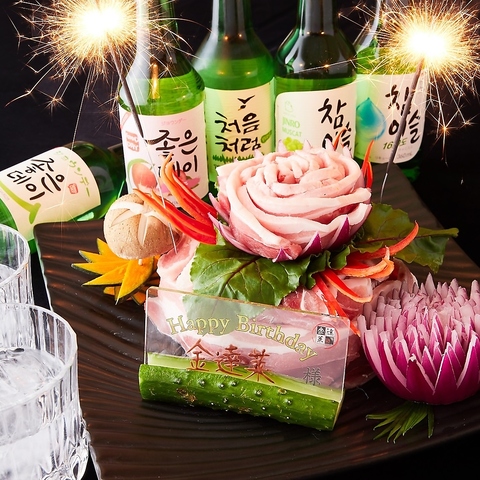 誕生日クーポンでのご予約の方には、無料でサムギョプサルの肉ケーキをサービス!お祝いにもご利用可能!