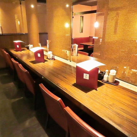 お仕事帰りにお立ち寄りやすいカウンター席をご用意しておりますので、お一人様でも気兼ねなくご利用いただけます。コースだけでなく、単品料理や単品飲み放題も豊富にご用意しておりますので、ちょい飲みやお食事にも最適です◎