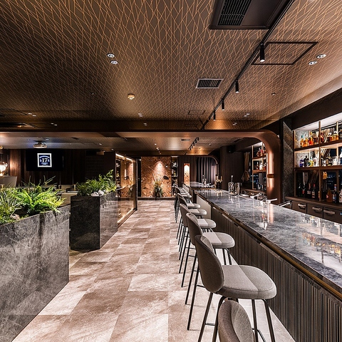 バー併設。カウンターやソファ席完備。シックな内装と照明が、大人のための上質な空間を演出し、お酒を楽しむのに最適。クラフトジンやカクテルなどの品揃えが豊富◎お気軽に立ち寄って、至福のひとときをお過ごしください。