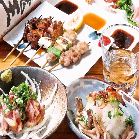 日替わりやきとり盛りなど希少部位を味わえる自慢の焼き鳥を愉しめる忘年会コースは90分飲み放題付き!