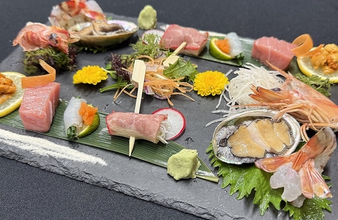 季節ごとに旬の味覚を活かしたコースのほか、もつ鍋コースもございます。長浜市場直送の鮮魚・活魚はもちろん、国産もつなど、素材にこだわり、職人の技で丁寧に調理いたします。赤坂・天神付近で、安くてうまい宴会場は大漁奉市です!