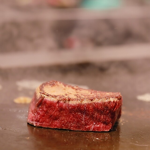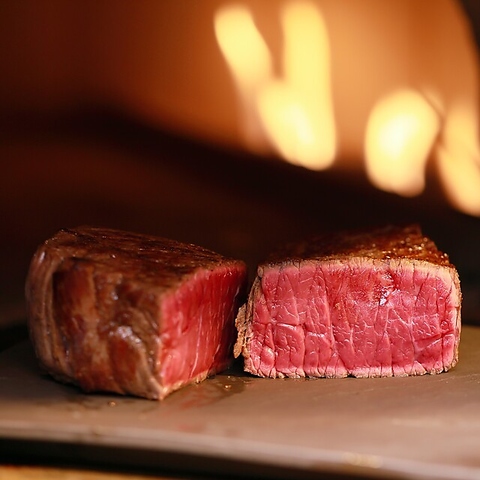 厳選した黒毛和牛希少部位!じっくり石窯で焼き上げ、鉄板で仕上げる。黒毛和牛赤身ステーキ