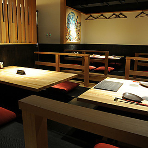 普段使いから宴会など幅広いシーンで利用可能お席も広々100席テーブル席と、掘りごたつの座敷席をご用意しております個室や半個室も完備。宴会用の40名様のお席もございます。