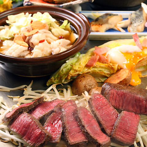 鉄板で焼き上げ、石窯で仕上げる。寺町店ではひと月に厳選された黒毛和牛をまるごと一頭買いしております。もも肉・うで肉を中心にあっさりとした赤身肉をご提供。鉄板で表面を肉汁で閉じ込めるように焼き、石窯の遠赤外線でふっくらジューシーに焼き上げます。ぜひ市場小路寺町本店にご来店くださいませ。