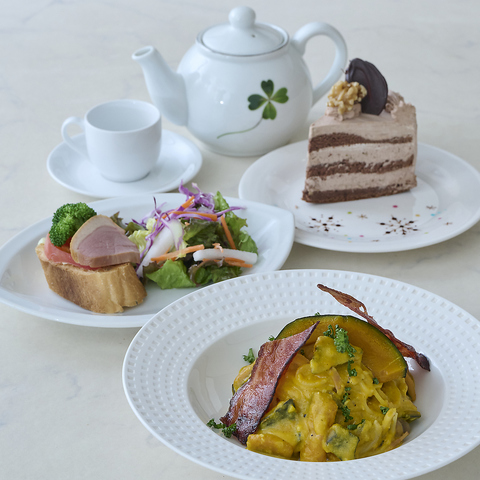 本日のオープンサンド(サラダ付き)/かぼちゃ&カリカリベーコン&茸のクリームスパゲティ/選べるケーキ/ドリンク