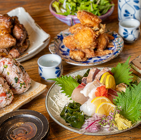 自慢の刺身盛り合わせはもちろん、この時期だけのお楽しみ!ギルティな痛風鍋、牛炭火焼、小フグ唐揚げなど旬で豪華な食材をふんだんに盛り込んだ豪華なコース♪忘年会や新年会、各種宴会にご利用ください。