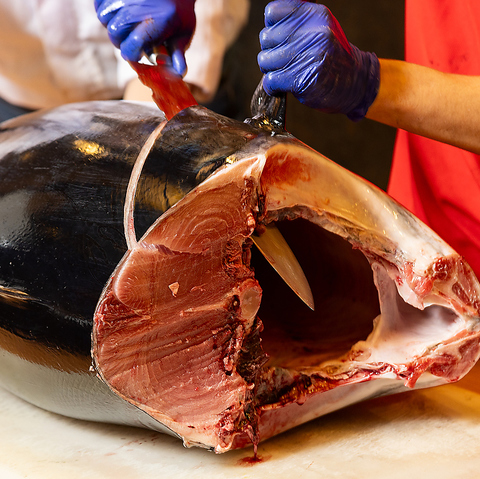 豪快!巨体なまぐろを捌く迫力満点の「生本まぐろ解体ショー」を開催!見て・食べて楽しむ最強のエンターテイメント♪会社の同僚やご友人と、ご家族・お子様も大歓迎!希少部位5種食べ比べ寿司やマグロカマ塩焼き、マグロ骨付き中落ち等売り切れ御免!同時に生本まぐろ祭り2/17(火)~2/19(木)開催※まぐろ無くなり次第終了