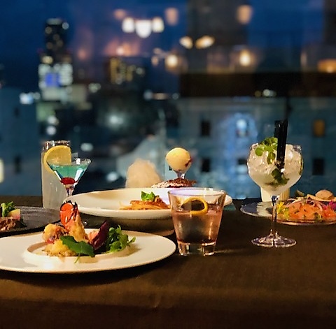 ページェントの光を見下ろしながらシェフが作る絶品料理とBARの本格カクテル飲み放題付き!席数限定ですのでお早目のご予約を!!
