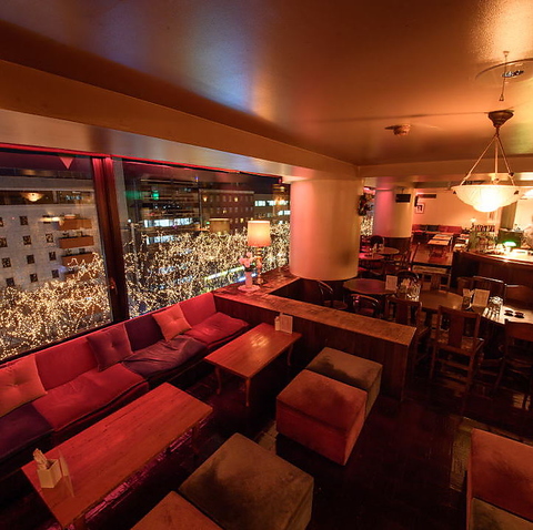 大人気の窓際席。ワンランク上のダイニングでカクテルやお食事をお愉しみ下さい!貸切のご予約も承っております!お気軽にお問い合わせください。20名様の半個室席や、120名様までの貸切等各種ご宴会でご利用いただけます。毎月変わるコース内容はその時期に旬な食材をふんだんに使用した内容に 飲み放題内容も充実です!!