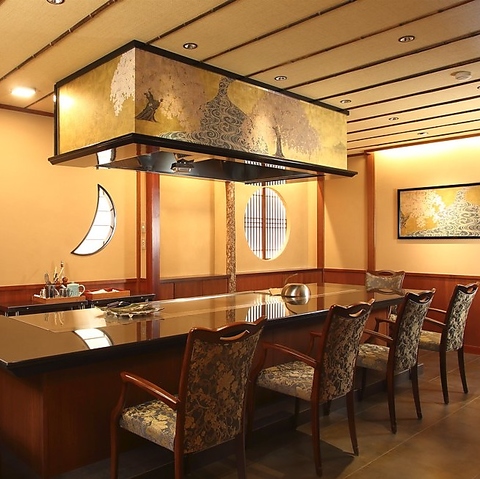 【個室・鉄板焼き】全4部屋 カウンター席 定員2名様から6名様 あなただけの専属シェフがおもてなし♪目の前で豪快に焼き上がる姿は必見!豪華食材の数々を鉄板焼きで味わえる贅沢な大人時間。記念日のデートや家族のお祝いなど特別な日や接待の食事にもぴったり※写真は定員6名様の個室です。