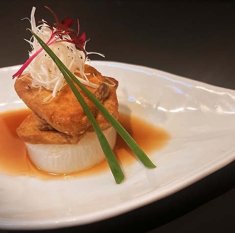 ちょっと洋風に、あん肝をバターと正油で炒め、大根の上にのせてみました。又、違った味わいをお楽しみください。 ※冬季メニュー