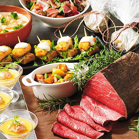当店人気のローストビーフをはじめ、トッピング豊富なサラダ、窯焼きのピッツア(2種)、こころもからだも温まるあったか料理。寒い季節の到来ですが、皆で集い、お腹いっぱいにして寒さを笑い飛ばしましょう。