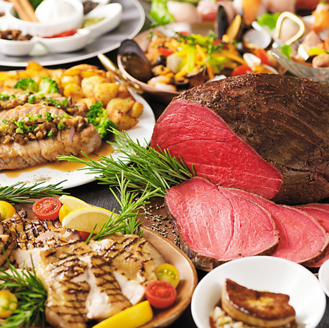 ボリュームたっぷりの肉料理が自慢の当店では、ローストビーフやステーキをシェフがその場でカッティング!ライブパフォーマンスを楽しみながら、できたての美味しさを堪能できるのが魅力です★食欲をそそる香ばしい香りと共に、心温まるひとときをお過ごしください♪