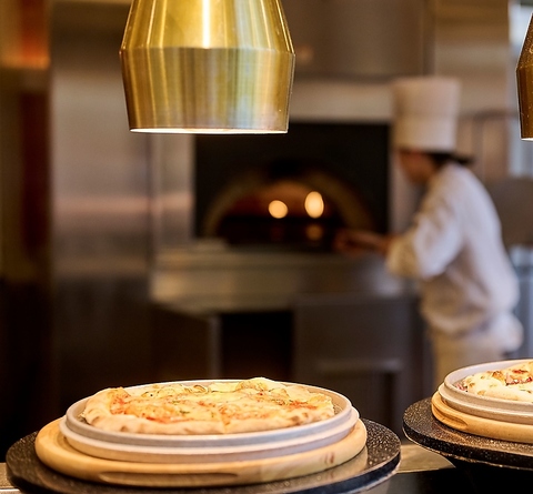 温度を400℃まで上げられる専用石窯で焼き上げた石窯ピザ。絶妙な焼き加減で窯から出されふっくらモチモチの生地と、とろけるチーズが相まった本場のナポリピザさながらの味。