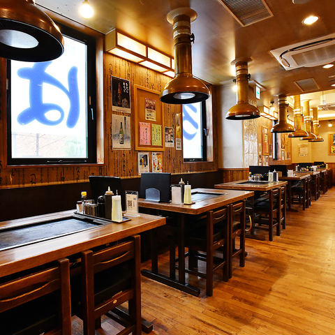 店内には、4名様までご利用頂けるテーブル席を10か所ご用意しております。ご友人やご家族でのお食事、デートや会社のご宴会など様々なシーンで是非ご利用ください。広々とした木目調の店内は全席排煙ダクト付きなので、清潔感があり臭いも気になりにくいのが特徴です。どうぞお気軽にお越しください。お待ちしております◎
