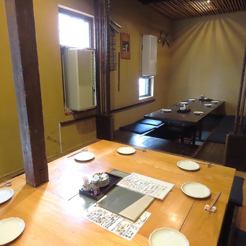 一軒家を改造した居心地の良い当店は半個室の掘りごたつ席がありゆったりとくつろげる空間が広がっています