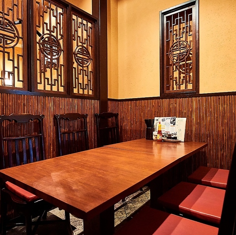 【宴会に使いやすいテーブル席】落ち着いたアジアンテイストの店内には、ゆったり過ごせるテーブル席をご用意。料理のシェアがしやすい広さで、友人同士の食事はもちろん、女子会やカジュアルな飲み会にも最適。心地よい照明と木の温もりに包まれながら、会話も弾むくつろぎの時間をお楽しみいただけます。