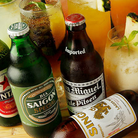他のお店には負けない豊富な品揃えのドリンク。333、シンハ―などのビールはもちろん、サイゴンスペシャル、プーケットなどの珍しいビールもご用意しております!他にもルアモイなどのベトナム酒や、当店オリジナルカクテル、アオザイビューティーなど、当店にしかないアジアンドリンクをお楽しみください☆焼酎やソフトドリンクもございます♪
