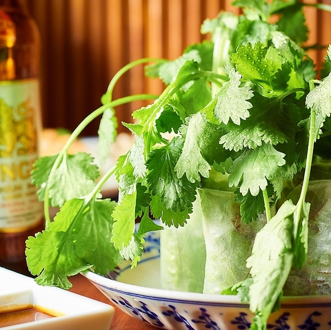 パクチー好き必見!!山ほどパクチーをの推せた生春巻きは見た目のインパクトも抜群で、インスタ映え間違いなし!?ヘルシーなのに満足度の高い一品となっております。