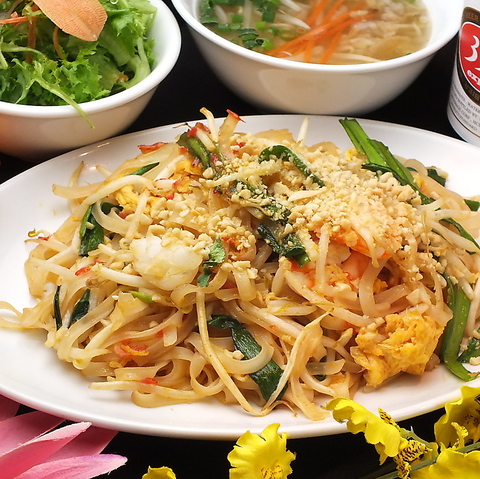 もはや定番のエスニック料理といえばこれ。米粉の麺を使った タイの代表的な炒め麺料理。「パッ=炒める」「タイ=タイ国」という意味で、直訳すると “タイ風炒め”。異国感あふれる店内で本格的なタイ料理をお楽しみいただけます。
