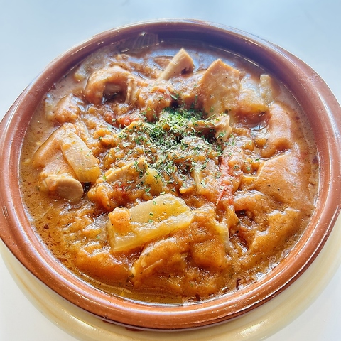 牛ミノのマドリッド 風 煮込み赤ワインとともにどうぞ。