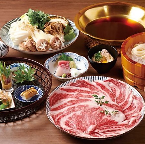 温まるすき焼きのお鍋を御用意致しました。2時間の飲み放題付きなのでご宴会などにもおすすめ。その他にも、おうどんの会席などコースを多数ご用意しております。