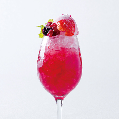 巨峰のお酒をベースにストロベリーのアイスを添えて雪をイメージしたベリーカクテル。■アルコール:巨峰リキュール×クランベリージュース 夜 860円/昼 780円■ノンアルコール:葡萄ジュース×クランベリージュース×レモンシロップ 夜 770円/昼 700円