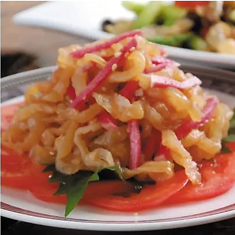 クラゲならではのプリプリ食感が楽しめる。ピリ辛の特製ソースで和えました。/テイクアウトOK