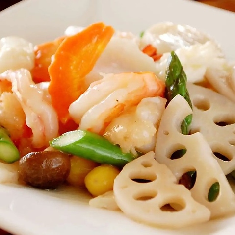 女性からも特に人気を集める、海鮮の風味豊かな【アオリイカと紅ずわいがに入りあんかけやきそば】!ぷりぷりのアオリイカと、風味豊かな紅ずわい蟹がたっぷり入った豪華な仕上がり★あっさりとした絶妙な塩味の餡が、カリッと香ばしく焼かれた麺に絡みつく瞬間がたまりません!シャキシャキとしたゴロゴロ野菜の食感も楽しく、食べ応えも抜群!