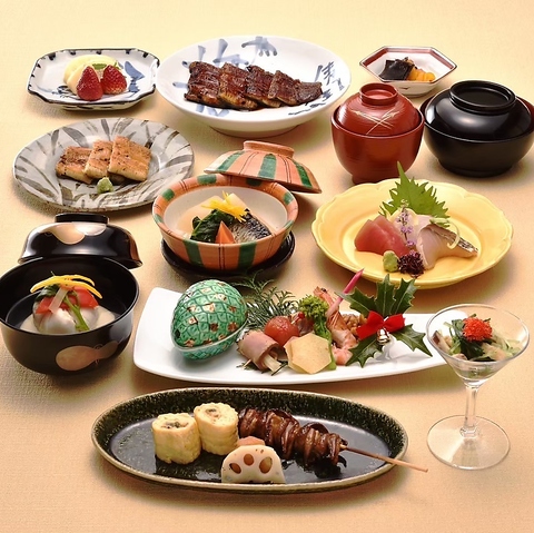 絶品のひつまぶしに、お造りや肝焼きも楽しめるコース。ひつまぶしは名古屋、江戸前をお選びいただけます。