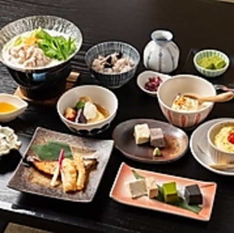 良質なあご(飛魚)と、北海道産の利尻昆布を使い4時間かけてとった出汁、京都亀岡産の白味階を、有機大豆100%の豆乳にあわせたやさしい味です。