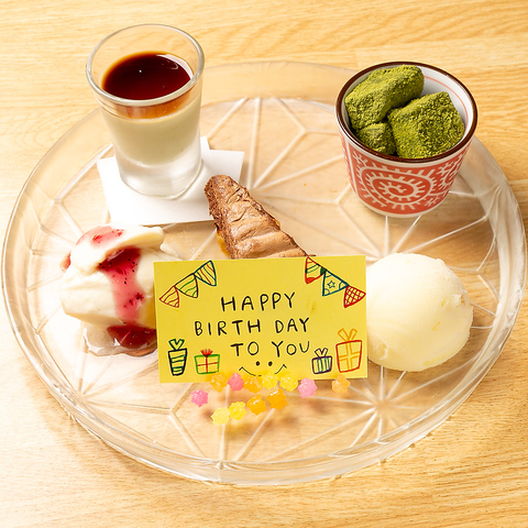 880円でプレートのご対応もしております◎誕生や記念日のお祝いに◎カップルや友達同士のお祝い大歓迎!