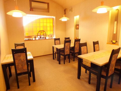 【テーブル席】ゆったりとした居心地のよい空間。静かに音楽が流れ、どこかホッと安らぐ家庭的な雰囲気。美味しい料理に自然と会話も弾みます