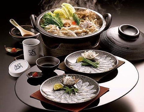 てっちりコースご予約承り中!接待、会食、プライベートのお食事会など、この季節だけのふぐ料理を是非ご賞味下さいませ。ふぐフルコールは特に人気のコースです!