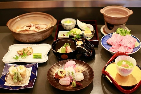 人気の鮑バター焼き・黒毛和牛しゃぶしゃぶ小鍋・鰻蒲焼が入ったコース料理で接待に人気です。