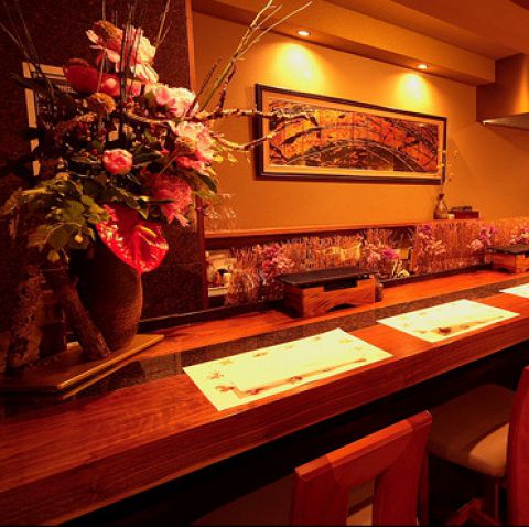 臨場感溢れるカウンター席は、目の前で店主の包丁さばきを見ながら、お料理をお愉しみ頂ける特等席。水槽には新鮮な魚介類が♪その場でさばいて頂ける新鮮な食材のお味を是非ご堪能下さい。
