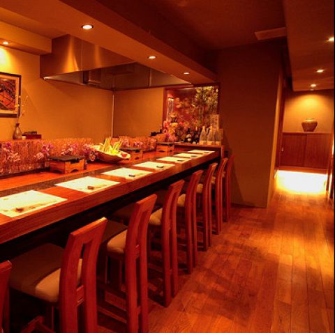 大人な雰囲気に包まれたカウンター席です。優しく気さくな大将との会話も楽しめますよ。