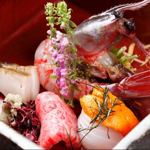 近海の天然魚介を中心に毎日厳選した新鮮な食材を仕入れております。素材本来の味をご堪能下さい。盛り付けや器、細部までこだわっており、目と舌でお料理をごゆっくりとお愉しみ頂けます。