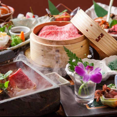 黒毛和牛A5ランクの しゃぶしゃぶ or すき焼き コースをご用意しております。熟成された黒毛和牛の極上の味わい、お口に入れた瞬間に溢れ出る肉汁、和牛の醍醐味を心行くまでお愉しみ下さい。